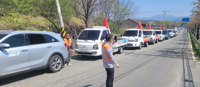 이날 참여자들은 화남면 행정복지센터 앞에서 산불 예방 결의문과 구호를 제창한 뒤, 차량 가두행진을 통해 주민들을 대상으로 영농 부산물 및 논·밭두렁 불법 소각 금지, 화목보일러 안전관리 등 산불 예방 수칙을 집중적으로 홍보하며 산불 예방 분위기 확산에 나섰다.