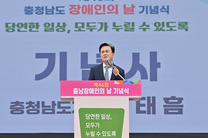 김태흠 지사는 기념사를 통해 “충남은 장애인과 가족이 일상 속에서 언제든 기대고 의지할 수 있는 든든한 복지 구축에 힘쓰고 있다”며, “누구도 소외되지 않고 모두가 당연한 일상을 누릴 수 있는 장애인 친화도시 충남을 만들어 나가겠다”고 말했다.