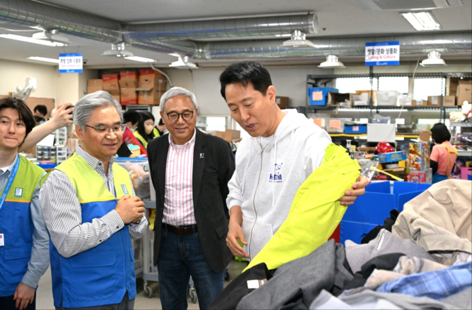20일(월) 굿윌스토어 1호점을 찾은 오세훈 서울시장이 현장을 점검하고 있다