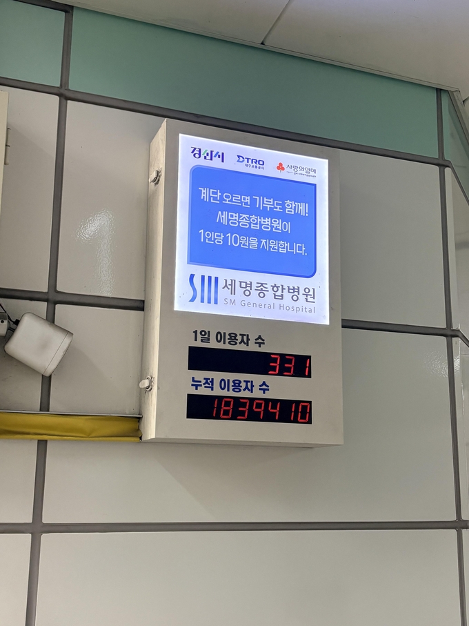 건강나눔계단은 2019년 경산시, 세명종합병원, 경북사회복지공동모금회 협약을 통해 설치된 이후, 계단 이용자 수에 따라 기부금이 적립되는 시민 참여형 나눔 모델로 운영되며 현재까지 연간 최대 1,000만 원 규모의 기부로 지역 내 나눔문화 확산에 기여하고 있다.