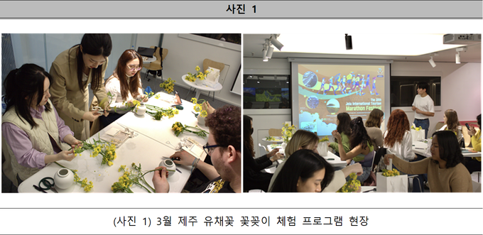 지난 3월‘제주 유채꽃 꽃꽂이’프로그램은 높은 참여율과 만족도를 기록했으며, 오는 6월 개최되는 제주국제관광마라톤 등 지역 관광 콘텐츠와 연계해 방문 수요로의 확장 가능성을 확인했다.