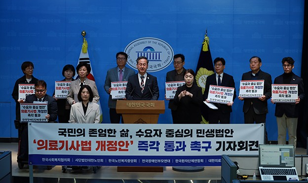 돌봄통합지원법의 핵심은 지역사회에서 실질적인 서비스를 제공하는 전문가의 ' 다학제적 접근 ' 과 유기적인 역할입니다 . 하지만 의협은 현장에 오지도 않은 채 ' 지도 ' 라는 이름의 권력으로 보건의료 시장의 모든 자본과 수익을 독점하려 하고 있습니다 . 의협이 겉으로 내세우는 ' 환자 안전 ' 은 결국 자신들의 주머니를 채우기 위한 핑계에 불과합니다 . 환자의 절박한 처지는 외면한 채 오직 경제적 이익 창출에만 매몰된 의료독점주의와 낡은 공급자 우위의 패러다임은 국민의 생명권과 건강권을 심각하게 위협할 뿐입니다 . 국회는 이 거대 기득권의 불합리한 횡포에 휘둘리지 말고 온전히 국민의 편에 서서 수요자중심 민생법안인 ‘ 의료기사 등에 관한 일부 법률 개정안 ’ 을 즉각 통과시켜야 합니다 .