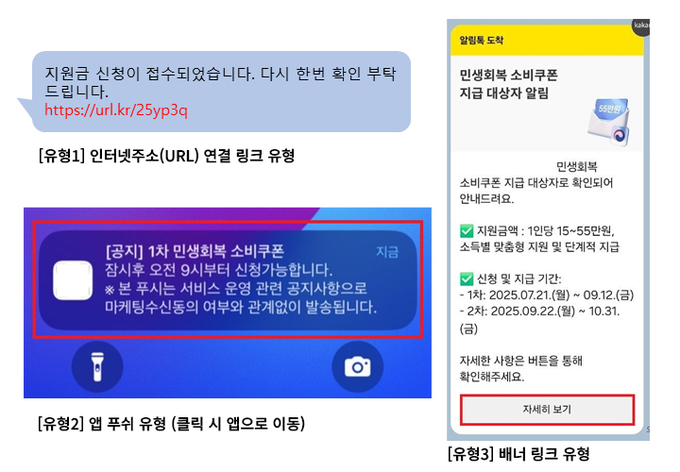스미싱 유형 예시 (민생회복 소비쿠폰 예시)