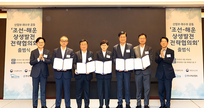해양수산부와 산업통상부는 28일 서울 롯데호텔에서 '조선-해운 상생발전 전략협의회' 발족식을 공동 개최했다고 전했다.