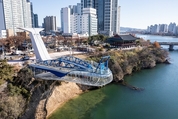 [울산/진승백기자] 울산 태화루 스카이워크가 개장 후 9만 5,000여 명이 다녀가며 새로운 관광명소로 떠오르고 있다. 울산시는 새로운 상징물(랜드마크)로 떠오른 태화루(용금소) 스카이워크가 개장 100여 일을 맞이하며 지역을 대표하는 체험형 관광명소로 빠르게 자리 잡고 있다고 밝혔다. 태화루 스카이워크는 분수와 경관조명, 외벽 영상(미디어파사드), 전동그네, 그물망(네트) 체험시설 등 휴식·체험 시설을 갖췄으며, 지난해 12월 24일부터 개방해 운영 중이다. 태화강의 수려한 수변 경관을 조망할 수 있으며 시민과 관광객이 머물며 즐길 수 있는 다양한 휴식·체험 시설들이 설치돼 인기를 끌고 있다. ▲ "봄바람 타고 날아요"…그네, 네트 인기 먼저 스카이워크에 마련된 전동그네와 그물망(네트) 체험시설은 본격적인 봄 행춘기를 맞아 가족 단위 방문객과 젊은 층 사이에서 '인생사진(샷)' 명소로 주목받고 있다. 탁 트인 태화강의 절경을 배경으로 하늘을 유영하는 듯한 이색적인 체험은 기존의 평범한 전망대에서는 느낄 수 없는 짜릿한 즐거움을 선사하고 있다. ▲ "정적인 국가정원에 '활동(액티비티)'이라는 색을 입히다" 그동안 태화강 국가정원은 아름다운 자연 경관에도 불구