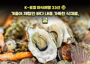 ☆ 언제 ? 굴은 겨울철(11~3월) 바다의 찬 수온을 견디기 위해 몸에 지방을 채우는데, 이때 자연스럽게 맛과 향이 차오른다. ☆ 어디에서? 경남 통영과 거제도 주변 곳곳에 굴 양식장이 자리한다. 통영항은 이 일대의 양식장에서 수확한 굴이 들어오는 곳으로 주변에 굴을 전문으로 취급하는 식당이 많다. 그중에서도 강구안 항구 주변에 굴 요리 전문점이 많이 분포해 있다. 한국 사람들은 주로 겨울에 굴을 찾는다. 주로 '참굴'을 먹는데 낙엽이 지는 늦가을부터 꽃이 피기 시작하는 초봄까지가 제철이라고 할 수 있다. 겨울철 차가운 수온을 견디기 위해 몸에 가득 채운 글리코젠 덕분에 이 시기에 나오는 굴은 맛과 향이 일품이다. ☆ 굴의 천국, 한국 귀한 대접을 받는 서양에서는 물론, 생산량이 많다는 한국에서도 굴은 고급 식재료로 여겨진다. 굴 양식이 대량으로 이루어지는 한국에서는 굴을 비교적 저렴하게 즐길 수 있다. 한국의 굴 생산량은 32만 6000 톤으로 세계 생산량의 5%에 달한다. 굴 한상차림. 상대적으로 해안 면적이 넓지 않은 한국에서 굴이 많이 나는 이유는 자연환경 덕분이다. 남해와 서해 일대는 거친 파도를 막아주는 리아스식 해안이 이어지는데, 이는 굴이 성