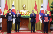 [한국방송/최동민기자] 베트남을 국빈 방문 중인 이재명 대통령은 22일(현지시간) 오후 베트남 국가주석궁에서 또 럼 당서기장 겸 국가주석과 정상회담을 갖고, 양국 간 포괄적 전략 동반자 관계 발전 방안과 지역·국제 정세 등에 대해 심도 있게 논의했다고 이규연 청와대 홍보소통수석이 서면 브리핑했다. 또 럼 당서기장은 이 대통령의 베트남 방문을 환영하며, 본인이 지난해 한국 정부의 첫 국빈으로 방한한 데 이어, 이 대통령이 베트남의 신지도부 출범 후 베트남의 첫 국빈으로 방문한 것을 뜻깊게 생각한다고 했다. 이 대통령은 또 럼 당서기장의 환대에 사의를 표하고, 서로가 첫 국빈 접수국으로 상대국을 선택한 것은 양국이 얼마나 특별한 관계인지를 잘 보여주고 있다고 했다. 양 정상은 교역·투자를 비롯해 에너지·원전, 인프라, 과학기술, 문화·인적교류 등 미래지향적, 전략적 분야에서 협력을 한 단계 높이자는 데 의견을 같이했다. 이에 이번 정상회담을 계기로 분야별 협력 강화를 위한 총 12건의 협력 문건이 체결됐다. 교역·투자 분야에서 양 정상은 호혜적인 실질 협력을 더욱 강화해 나가기로 했다. 이와 관련, 이번 정상회담을 계기로 '식품, 의약품, 화장품, 의료기기 안전