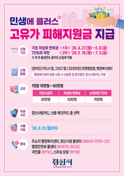 [경산/김근해기자] 경산시는 27일부터 시작되는 「고유가 피해지원금」 1차 지급을 앞두고, 전담 T/F(Task Force) 구성과 읍·면·동 담당자 교육 등 신속한 지원금 지급 준비에 박차를 가하고 있다. 「고유가 피해지원금」은 대상에 따라 1·2차로 나누어 지급되며, 1차 지급은 4월 27일부터 5월 8일까지 기초생활수급자에게 1인당 60만 원, 차상위계층 및 한부모가족 대상자에게 50만 원이 지급된다. 2차 지급은 5월 18일부터 7월 3일까지 진행되고, 소득 하위 70% 시민에게 1인당 15만 원이 지급될 계획이다. 1차 기간 내에 지원금을 신청하지 못한 대상자는 2차 지급 기간에 신청해 지급받을 수 있다. 지급된 지원금은 1·2차분 모두 8월 31일 24시까지 사용해야 하며 사용하지 않은 잔액은 자동 소멸된다. 지급수단은 신용·체크카드 또는 경산사랑카드 중 선택하여 신청할 수 있다. 신용·체크카드 지급을 희망하는 경우, 이용 중인 카드사 홈페이지나 앱을 통해 온라인으로 신청하거나 카드와 연계된 은행 영업점을 방문하여 접수하면 된다. 경산사랑카드로 지급받고자 하는 시민은 ‘그리고 앱’을 통해 신청하거나, 주소지 관할 읍·면·동 행정복지센터를 방문해 신