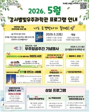 서울 강서구(구청장 진교훈) 강서별빛우주과학관(관장 심재현)은 5월 어린이날과 우주항공주간을 맞아 어린이부터 성인까지 온 가족이 함께 우주의 신비를 즐길 수 있는 특별 프로그램을 운영한다. 이번 프로그램은 ▲어린이날 기념 로켓 만들기 ▲우주항공주간 기념행사 ▲정기 천문 교육 등 다채롭게 구성됐다. 먼저 5월 2일에는 어린이날을 기념해 '나도 로켓박사가 될래요, 로켓 만들기(누리호)' 체험이 열린다. 어린이와 보호자가 한 팀을 이뤄 로켓의 기본 원리를 배우고, 직접 만든 로켓을 쏘아보며 과학적 호기심을 키운다. 5월 23일에는 우주항공청 개청에 따라 지정된 '우주항공의 날(5월 27일)'을 기념하는 주간 행사가 이어진다. 오전 10시부터 오후 5시까지 과학관 앞마당에서는 우주 전문 서적부터 그림책까지 비치한 야외도서관이 열린다. 오후 2시에는 한국항공우주연구원 김현준 우주발사체 선임연구원이 직접 나서 '로켓을 만드는 사람들'을 주제로 우주발사체 개발 현장의 생생한 이야기를 들려준다. 이어 오후 4시엔 우주개발사에 한 획을 그은 여성 과학자 3인의 실화를 담은 영화 '히든 피겨스' 상영회가 열리며, 오후 8시부터 1시간 동안은 천체망원경으로 밤하늘을 직접 관측하