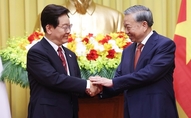 [한국방송/최동민기자] 베트남을 국빈 방문 중인 이재명 대통령은 22일(현지시간) 오후 베트남 국가주석궁에서 또 럼 당서기장 겸 국가주석과 정상회담을 갖고, 양국 간 포괄적 전략 동반자 관계 발전 방안과 지역·국제 정세 등에 대해 심도 있게 논의했다고 이규연 청와대 홍보소통수석이 서면 브리핑했다. 또 럼 당서기장은 이 대통령의 베트남 방문을 환영하며, 본인이 지난해 한국 정부의 첫 국빈으로 방한한 데 이어, 이 대통령이 베트남의 신지도부 출범 후 베트남의 첫 국빈으로 방문한 것을 뜻깊게 생각한다고 했다. 이 대통령은 또 럼 당서기장의 환대에 사의를 표하고, 서로가 첫 국빈 접수국으로 상대국을 선택한 것은 양국이 얼마나 특별한 관계인지를 잘 보여주고 있다고 했다. 양 정상은 교역·투자를 비롯해 에너지·원전, 인프라, 과학기술, 문화·인적교류 등 미래지향적, 전략적 분야에서 협력을 한 단계 높이자는 데 의견을 같이했다. 이에 이번 정상회담을 계기로 분야별 협력 강화를 위한 총 12건의 협력 문건이 체결됐다. 교역·투자 분야에서 양 정상은 호혜적인 실질 협력을 더욱 강화해 나가기로 했다. 이와 관련, 이번 정상회담을 계기로 '식품, 의약품, 화장품, 의료기기 안전