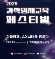 과학기술정보통신부(부총리 겸 과기정통부 장관 배경훈, 이하 과기정통부)와 한국과학창의재단(이사장 정우성, 이하 창의재단)은 12월 23일(화), 과학기술컨벤션센터(서울 강남구)에서‘과학영재, 인공지능 전환(AX) 시대를 밝히다’를 주제로 『2025 과학영재교육 축제(페스티벌)』를 개최했다. * 행사 누리집: https://sgf2025.kr 2021년 온라인 개최를 시작으로 5년차를 맞은 과학영재교육 축제(페스티벌)는 과학영재양성사업의 성과와 과학영재교육의 다양한 모습을 전국민과 공유하고, 과학영재교육의 구성원 간 소통 · 교류를 통해 과학영재교육의 미래상(비전)을 모색하는 자리이다. 과학기술정보통신부와 한국과학창의재단은 2009년부터 과학영재를 이공계 핵심 인재로 육성하기 위해 과학영재양성사업을 운영하면서, 전국 27개 대학부설 과학영재교육원과 28개 과학고 · 영재학교의 운영을 지원하고 있다. 과학고·영재학교 학생 1,558명에게는 과학영재 창의연구(R&E) 활동을 지원해 학생이 과학영재로서 갖추어야 할 과학적 탐구 역량과 창의적 문제해결 능력을 쌓을 수 있도록 지원하고 있다. 또한, 국제과학올림피아드 출전을 지원하여 8개 분야 출전 학생 전원 메