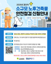 [경산/김근해기자] 경산시(시장 조현일)는 법적으로 안전 점검 의무가 없는 소규모 노후 건축물을 대상으로 건축 전문가가 참여한 안전 점검을 추진, 이달 16일부터 5월 1일까지 신청자를 모집한다. 사용승인 후 30년 이상 지난 '소규모 노후 건축물'은 정기 안전 점검 의무가 없어, 관리가 제대로 이루어지지 않는 경우가 많다. 이에 안전 사각지대를 해결하고자 건축 전문가와 함께 현장점검을 할 예정이며, 소요되는 점검 비용은 무료로 지원한다. 신청 대상은 사용승인 후 30년 이상 경과한 3층 이하 연면적 1,000㎡ 미만의 건축물이며, 개별 법령에 따라 의무적으로 점검해야 하는 건축물은 점검 대상에서 제외다. 건축주나 관리자가 신청을 하면 건축사 및 건축구조 분야 전문가가 직접 방문해 건축물을 육안 점검하고, 점검 결과 '미흡', '불량' 건축물로 판정되면 전문 기관의 정밀 안전 점검 이행을 안내한다. 시 관계자는“이번 안전 점검을 통해 안전 사각 지대를 해소하고, 시민들이 안심하고 생활할 수 있도록 안전 사고 예방에 최선을 다하겠다”라고 말했다.