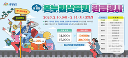 [충남/오창환기자] 충남도는 설 명절을 맞아 10일부터 14일까지 도내 7개 시군 12개 전통시장(연합포함 13개)에서 ‘온누리상품권 환급행사’를 실시한다. 해양수산부가 지역경제 활성화와 수산물 소비 촉진을 위해 주관하는 이번 행사는 행사기간 내 국내산 및 원양산수산물 구입 금액의 최대 30%를 온누리상품권으로 환급한다. 1인 2만원 한도이며, 3만 4000원 이상 구매 시 1만원, 6만 7000원 이상 구매 시 2만원을 환급받을 수 있다. 행사 참여 전통시장은 △천안시농수산물도매시장 △대천항수산시장(보령) △화지중앙시장(논산) △강경젓갈시장(논산) △강경대흥시장(논산) △당진전통시장 △부여시장 △부여중앙시장 △장항전통시장 △태안서부·동부시장(연합) △신진항골목형상점가(태안) △ 안면도수산시장(태안)이다. 시장 내부에 배치된 환급소는 대천항수산시장(보령), 강경젓갈시장(논산), 안면도수산시장(태안)의 경우 오전 10시부터 오후 6시까지, 그 외 시장은 오전 9시부터 오후 5시까지 운영되며 행사기간 내 구매한 영수증과 본인확인을 위한 신분증을 지참해야 한다. 이동유 도 해양수산국장은 “이번 환급행사가 설 명절을 앞둔 도민들의 장바구니 부담을 완화하고, 전통시장