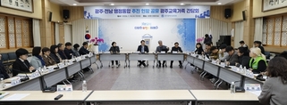 광주시교육청(교육감 이정선)이 급물살을 타고 있는 광주·전남 행정통합과 관련해 교육계 의견 청취에 나섰다. 시교육청은 14일 대회의실에서 '광주·전남 행정통합 추진 관련 교육가족 간담회'를 개최했다. 이날 간담회는 지난 12일 광주·전남교육감이 발표한 '행정통합 공동 선언'의 후속 조치로, 행정통합 추진 과정에서 교육 주체들이 소외되지 않도록 현장 의견을 수렴·반영하기 위해 마련됐다. 간담회에는 이정선 교육감을 비롯한 시교육청 간부와 학교급별 교장·행정실장 대표, 교원 단체·노조 대표 등 30여 명이 참석했다. 참석자들은 광주·전남 행정통합 추진 현황을 공유하고, 관련 의견을 나눴다. 이 자리에서 학교, 단체, 노조 대표들은 ▲행정통합 시 교육 행정 독립성 확보 방안 ▲지역 간 교직원 인사 교류 및 처우 문제 ▲교육 예산 배분 형평성 등을 고려해 줄 것을 주장했다. 또 행정통합으로 인해 교육 자치가 약화되는 상황이 발생하지 않도록 법적·제도적 장치를 마련해달라고 제안했다. 이정선 교육감은 "행정통합이라는 거대한 변화의 물결 속에서 가장 중요한 것은 우리 학생들의 미래와 교육 현장의 안정성"이라며 "오늘 제안받은 인사, 행정, 예산 관련 의견이 행정통합 추진