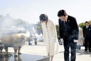 [한국방송/김주창기자] 이재명 대통령과 김혜경 여사는 16일 경기도 안산 화랑유원지에서 열린 '4·16 세월호 참사 12주기 기억식'에 참석해, 세월호 침몰로 인한 희생자 304명을 추모하고 유가족을 위로했다. 전은수 청와대 대변인은 이날 오후 서면 브리핑을 통해 "대통령이 세월호 참사 기억식에 직접 참석한 건 역대 대통령 중 처음으로, 취임 후 첫 번째로 맞이하는 기억식에 방문한 것이라 더욱 뜻깊다"며 이 같이 전했다. 이재명 대통령과 김혜경 여사가 16일 경기도 안산 화랑유원지에서 열린 세월호 참사 12주기 기억식에서 묵념하고 있다. 2026.4.16(사진=연합뉴스) 전 대변인은 "이는 사회적 참사에 대한 국가의 책임을 강화하고 국민 신뢰를 회복하겠다는 의지를 담은 행보"라고 설명했다. 이번 기억식의 주제는 '안전한 국가, 약속을 넘어 책임으로'다. 행사는 희생자 304명에 대한 묵념을 시작으로 주제 영상, 추모 공연, 단원고 재학생 편지 낭독, 추도 사이렌 묵상 순으로 진행됐다. 기억식에는 유가족과 재난참사 피해자, 우원식 국회의장 등 정치권 인사와 시민 등 약 1800명이 참석했으며, 4·16 합창단이 추모 공연에 참여했다. 이 대통령은 추도사를 통해