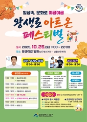 울산 남구(구청장 서동욱)는 오는 10월 25일 왕생이길 일원(남구청 사거리∼남울산우체국)에서 '왕생로 아트온 페스티벌'을 개최한다고 밝혔다. 이번 행사는 '일상 속, 문화로 야금야금'이라는 남구의 대표 문화브랜드를 중심으로 시민이 직접 보고, 듣고, 참여하며 즐길 수 있는 남구형 감성거리축제이자 지역 상권과 함께하는 축제로 기획됐다. 이날 하루 왕생이길 전 구간을 차 없는 거리로 운영하고 예술로 변신하는 음악공연과 길거리갤러리를 비롯한 체험프로그램, 버스킹, 플리마켓, 먹거리 등 다양한 문화콘텐츠가 마련됐다. 주 무대에서는 청소년오케스트라와 소년소녀합창단의 공연을 시작으로 퓨전국악·힙합, 청소년댄스팀, 구립교향악단·합창단 등 지역예술단체가 참여해 남구의 풍성한 예술 역량을 선보인다. 특히 오후 3시부터는 구독자 234만 명의 '창현 거리노래방'과 인디밴드 레이지본의 라이브 공연, 재즈· DJ 파티 무대 등 세대와 장르를 넘나드는 공연이 이어진다. 행사장 곳곳에는 청년 작가 아트페어와 사진·영화 포스터 전시, 초크아트, 타로·보드게임, 라이브페인팅 등으로 구성된 아트·체험존이 마련된다. 행복남구 문화아뜰리에 수강생이 거리 도슨트로 직접 나서 세계 명화를 소개