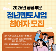 [군산/김주창기자] 군산시가 ‘2026년 공공부문 청년멘토사업’ 참여자 18명을 20일까지 모집한다. 이 사업은 관내 39세 이하 미취업자에게 공공기관 행정 실무경험을 제공해 구직역량을 높이기 위해 추진되고 있으며, 작년에는 총 16명의 미취업 청년들에게 공공기관 행정 업무 근무 기회를 제공했다. 특히 사업에 참여했던 청년들의 만족도가 높을 뿐만 아니라 다른 직장 취업에도 도움을 받을 수 있어 청년층의 많은 호응을 얻고 있다. 신청 자격은 공고일 이전 군산시에 주소를 두고 있는 만 18세 이상 39세 이하의 관내 미취업 청년으로 가구별 기준 중위소득이 180% 이하여야 한다. 접수는 군산시청 7층 일자리경제과 방문하거나 우편으로 신청 가능하며, 서류 및 면접 심사를 통해 최종 대상자를 선정한다. 근무 기간은 3월 3일부터 12월 2일까지이며 시청 및 읍면동에서 공공 행정서비스 업무를 수행하게 된다. 이헌현 일자리경제과 과장은 “구직에 어려움을 겪고 있는 청년들이 사회 진출을 위한 역량을 강화하는 기회가 될 것.”이라며, “얼어붙은 고용환경에서 이번 사업이 지역 청년들에게 도움이 되길 바란다.”라고 전했다. 2026년 공공부문 청년멘토사업 관련 기타 자세한 사