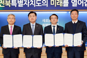 [한국방송/김주창기자] 새만금개발청(청장 김의겸)은 2월 9일 전북특별자치도, 한국전력공사, 한국수력원자력㈜와 함께 새만금 수상태양광(1단계) 발전사업의 적기 구축을 위한 상호 협력 업무협약(MOU)을 체결했다고 밝혔다. * 협약식에는 김의겸 새만금개발청장과 김성환 기후에너지환경부장관, 안호영 기후에너지환경노동위원회 위원장, 김관영 전북특별자치도지사, 김동철 한국전력공사 사장, 전대욱 한국수력원자력㈜ 사장 직무대행이 참석 새만금 수상태양광 1단계 사업은 약 13.5㎢ 수역에 1.2GW(설비용량)* 규모의 태양광 발전시설을 설치하는 총사업비 3조 624억원의 대형 프로젝트다. * 원자력 발전소 1기(원자로 1기)의 평균 설비용량 1GW 내외 완공 시 연간 약 1,700GWh의 친환경 전력을 생산할 수 있으며, 이는 약 35만 가구가 1년간 사용할 수 있는 전력량에 해당한다. 이번 협약은 새만금 수상태양광 1단계 발전사업을 차질 없이 추진하고, 조속한 전력 계통 연계를 통해 새만금의 풍부한 재생에너지를 RE100 산업단지에 안정적으로 공급하기 위한 전력설비를 조기에 구축하는 데 목적이 있다. 이번 협력을 통해 새만금 사업지역에 한전의 전력 인프라가 조기에 구축되